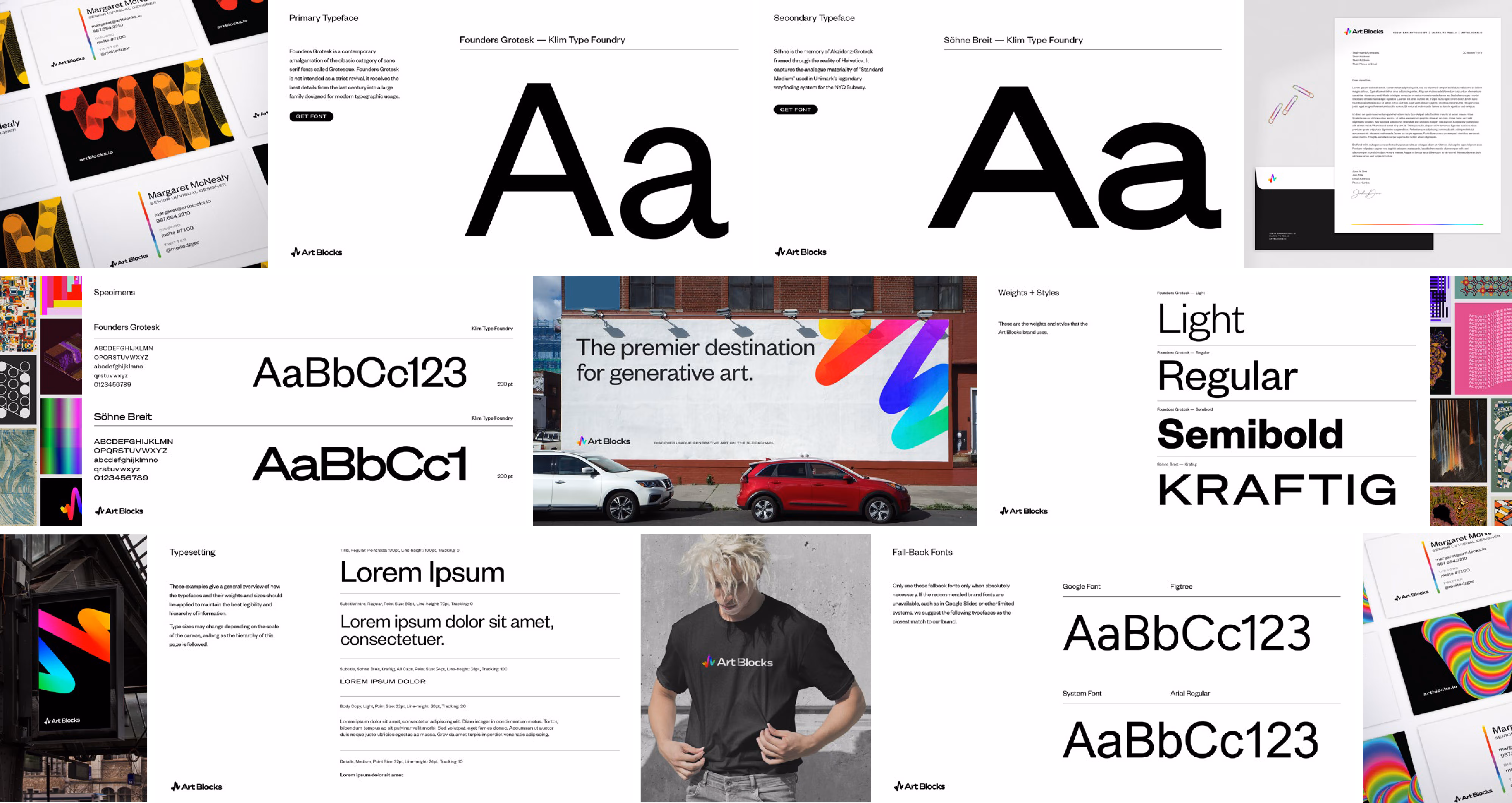 Art Blocks is the leading platform for generative art released on the Ethereum blockchain. Each artwork is created with code and minted on-chain, making every piece both unique and verifiably original. As the platform evolved from a grassroots experiment into a category-defining brand, the visual identity had to grow with it—becoming more expressive, more flexible, and more cohesive. My work focused on expanding and applying a system that supported artists, educated collectors, and ensured the Art Blocks brand remained recognizable without ever overshadowing the art on the platform.